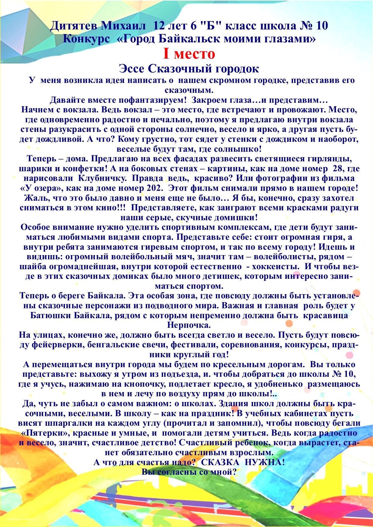 Итоги конкурса творческих работ «Город Байкальск моими глазами»