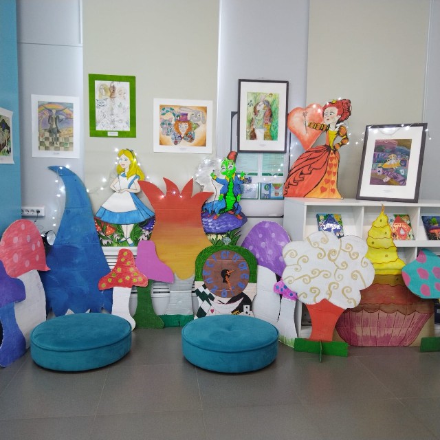 В вестибюле всех встречала наша традиционная беспроигрышная лотерея и фотозона, оформленная в стиле Алисы Льюиса Кэрролла.