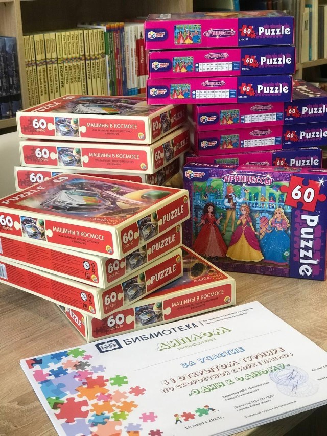 18 марта в нашей библиотеке прошел I открытый турнир по скоростной сборке пазлов «Один к одному», в котором приняли участие 11 человек из разных школ города. Правила были просты: каждому участнику на время необходимо было собрать две картинки по 60 элементов. Турнир прошел в очень теплой, дружественной атмосфере.
