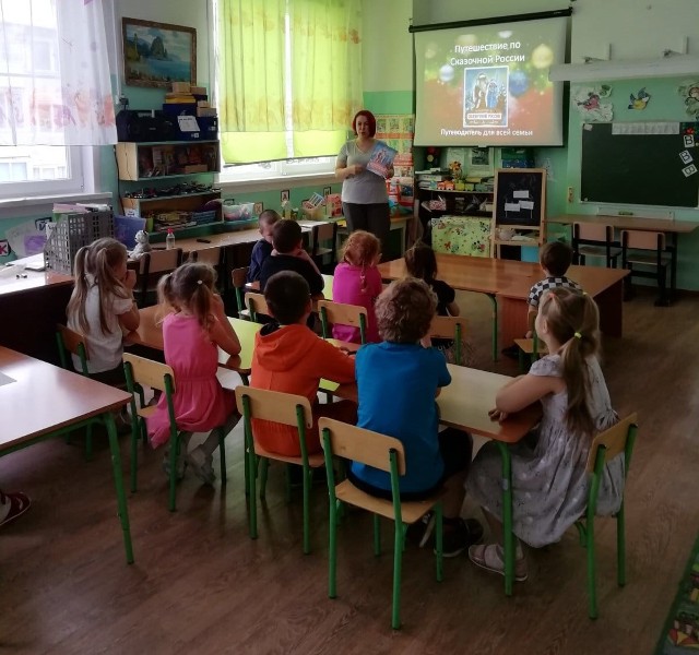 19 января воспитанники подготовительной группы «Б» школы-сад №13 со специалистом туристско-информационного центра библиотеки Байкальска совершили экскурсию по книге «Путешествие по сказочной России». Это не просто книга, а путеводитель для всей семьи. Читая это издание, можно узнать куда отправить письмо с пожеланиями и рисунками, где живут сказочные персонажи, какие у них резиденции, какие помощники, чем занимаются в течение года и многое другое.