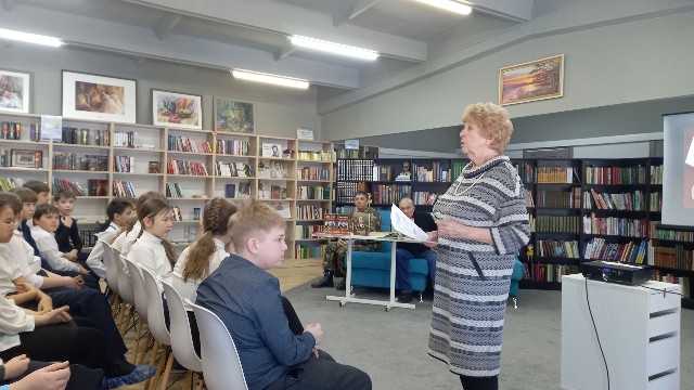 Сегодня, 3 февраля, в нашей библиотеке состоялся патриотический урок мужества «Горячий снег Сталинграда». Сотрудниками библиотеки подготовлен материал о самой ожесточенной битве – Сталинградской. Школьникам рассказали о героизме и мужестве советских воинах, полководцах, участвовавших в разработке военных операций битвы, показали видеоролик о детях, воевавших в разбомбленном фашистами городе. Мероприятие состоялось совместно со С.П. Волгиной. Она представила ребятам книгу «Чтобы помнили… Байкальчане – участники Великой Отечественной войны», ведь в ней хранятся истории бойцов, в том числе участников Сталинградской битвы. Светлана Павловна подробно рассказала о знаковом месте на карте города – доме Павлова. Почетными гостями урока мужества стали ветераны боевых действий на Северном Кавказе – С.Л. Одинаев и С.Н. Малихов.