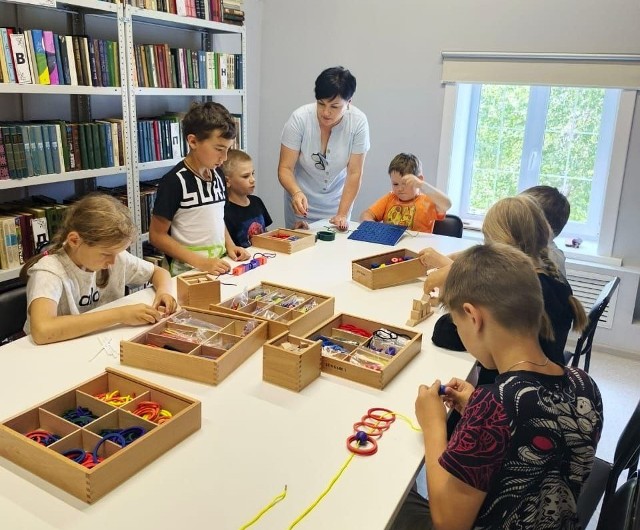 «Программа 1+1» продолжает свою работу, и 22 июля в стенах городской библиотеки прошло удивительное знакомство маленьких посетителей из Центра помощи детям с методикой Фридриха Фребеля.