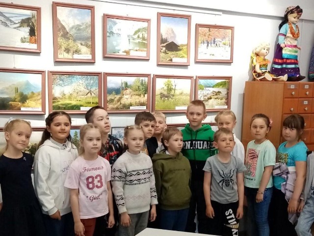 В начале презентации учащиеся узнали о жанре изобразительного искусства - пейзаже. Так же узнали краткую биографию художников, чьи полотна представлены на выставке. Дети познакомились с работами каждого живописца. Они с интересом задавали разные вопросы и отгадывали загадки. Время пролетело незаметно и познавательно.
