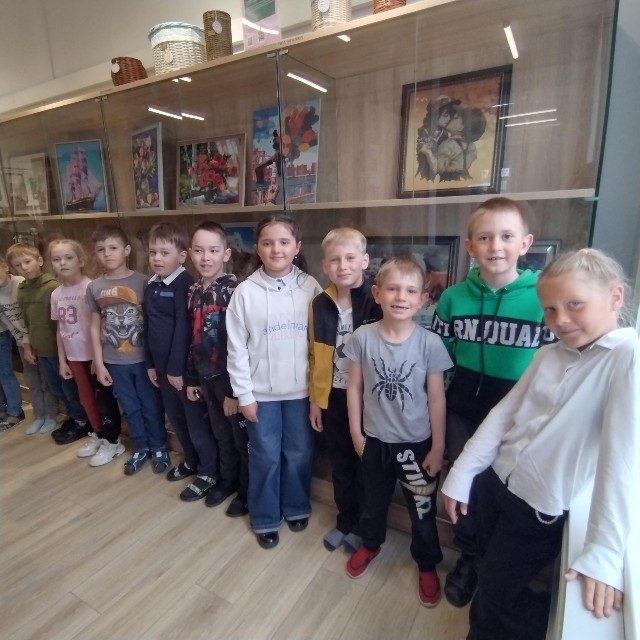 Ученики 1 «А» класса школы-сад №13, первыми посетили выставку картин.