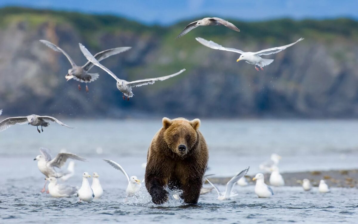 Природа Байкала может быть и опасной. Молчаливые и дремучие леса тайги являются обителью медведей. Да, на Байкале живут медведи, или "мишутки", как их ласково называют местные жители. Люди относятся к этим животным с опаской, хоть и принимают уже за своих. Опытный охотник никогда не пойдет в лес без оружия. Не удивительно, что медведей на Байкале называют хозяевами тайги. В южных окрестностях озера Байкал, особенно в заселенных людьми местах, медведей не встретишь так часто, однако, двигаясь к северу, вероятность этого увеличивается. Больше всего медведей обитает именно в этой части, которая славится своей нетронутой природой и больше похожа на райское место. Меньшее количество косолапых обитает на гористом полуострове Святой Нос. Если вы хотите посмотреть красоты озера Байкал, но опасаетесь встретиться с медведями, то смело езжайте на остров Ольхон. Там медведи никогда не жили и не живут. Лишь один мишутка однажды случайно туда забрел, когда забыл уснуть зимой и на льдине переправился с материка на остров.