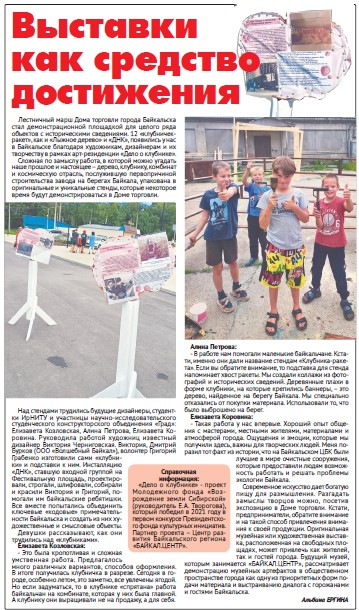 14. Крысина Елена. Арт-лето в Байкальске // Байкальская газета. – 2022. – № 33 (25 августа). – С. 7.