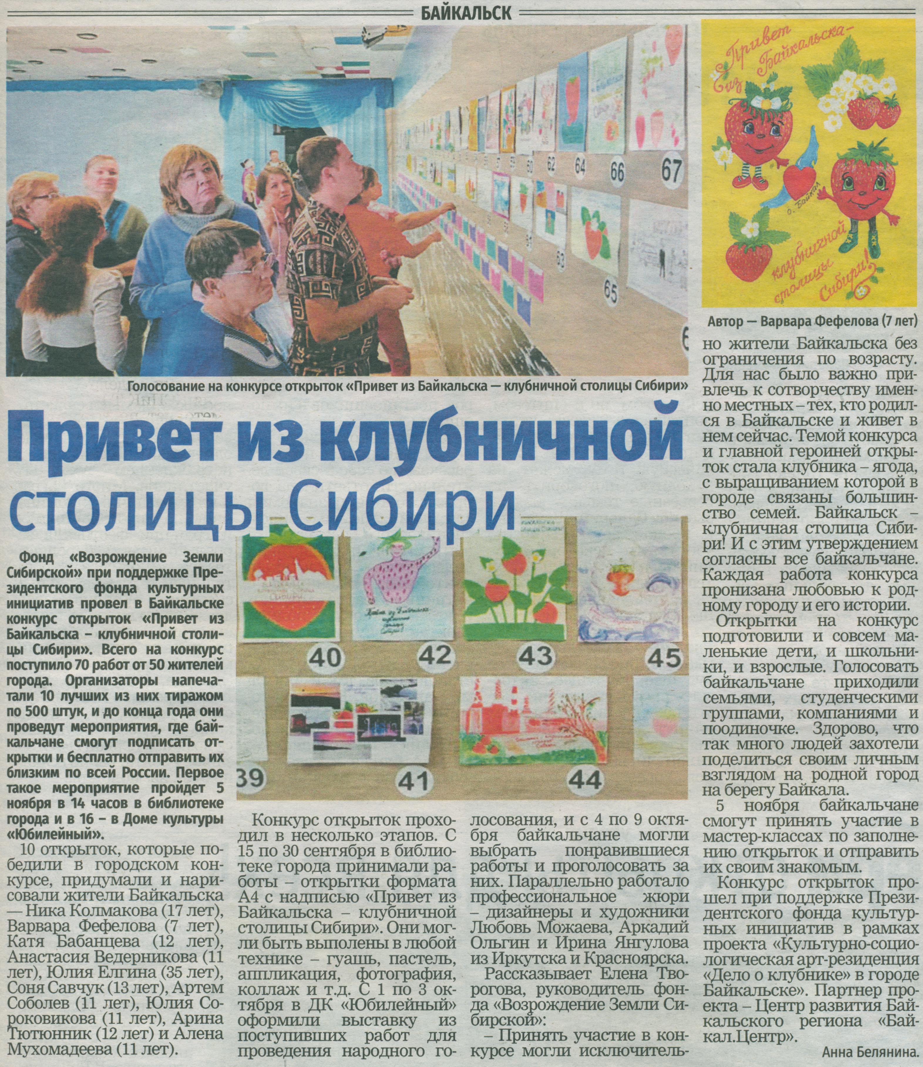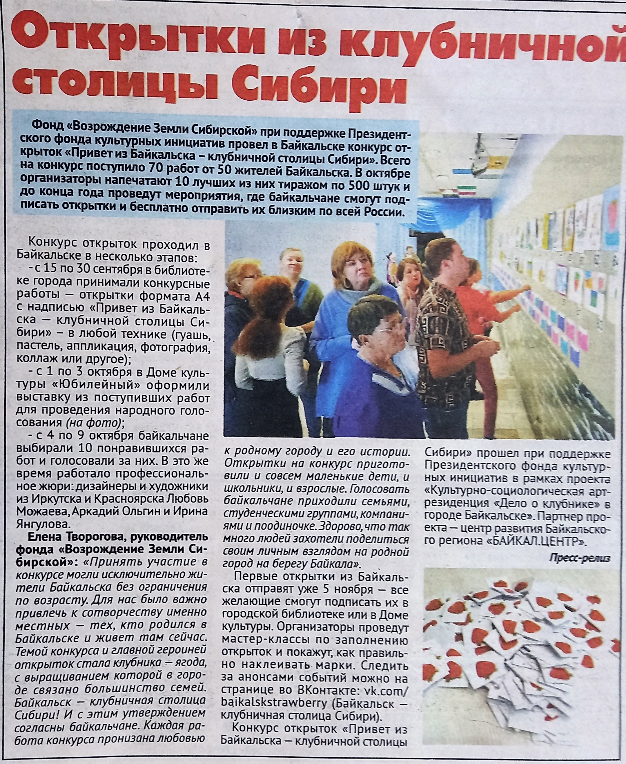 (Первые открытки «Привет из Байкальска – клубничной столицы России» подпишут участники конкурса и жители города 5 ноября)