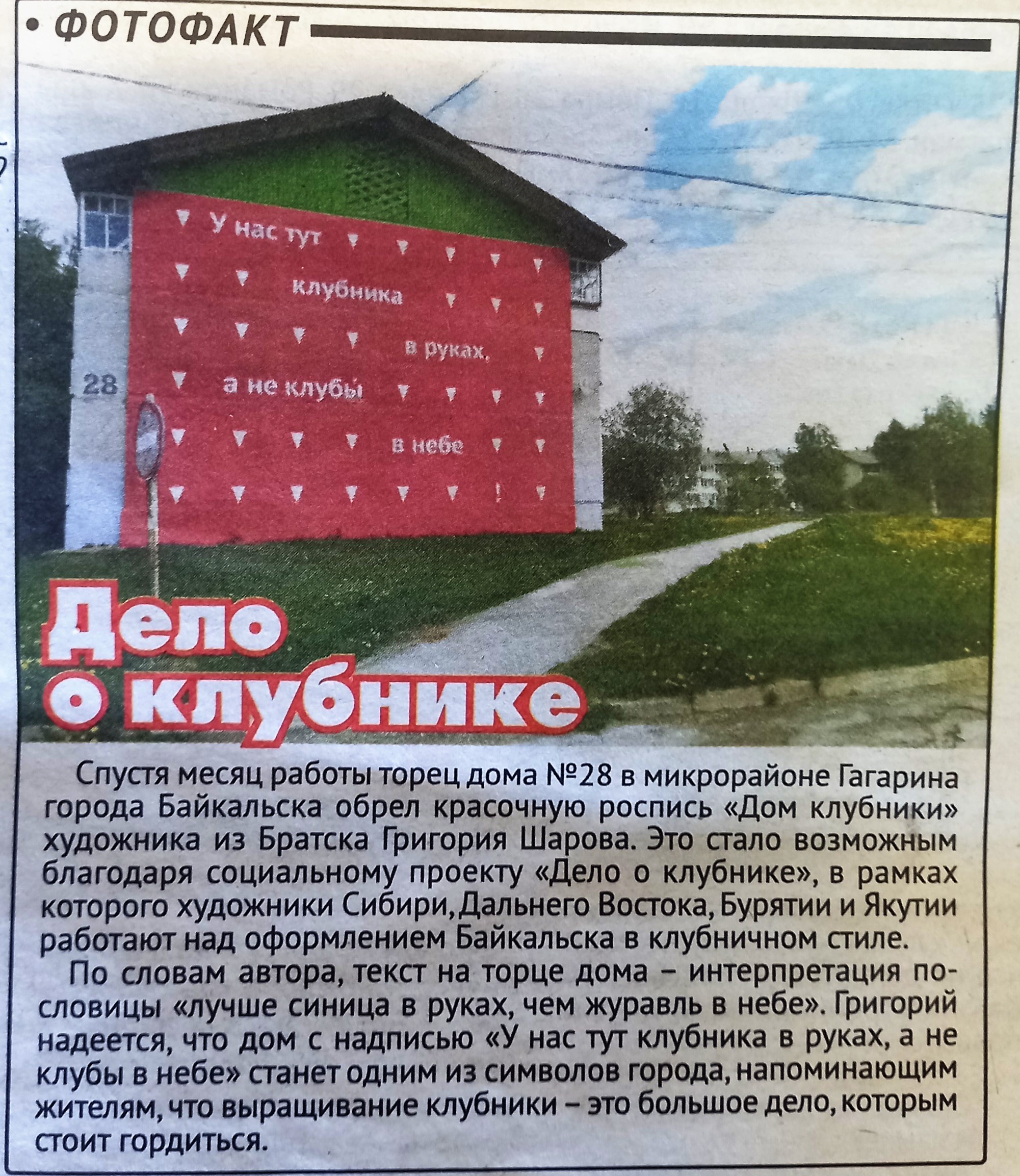 (Уличный художник Гриша Шаров представил свою работу – «Дом клубники», в Байкальске)