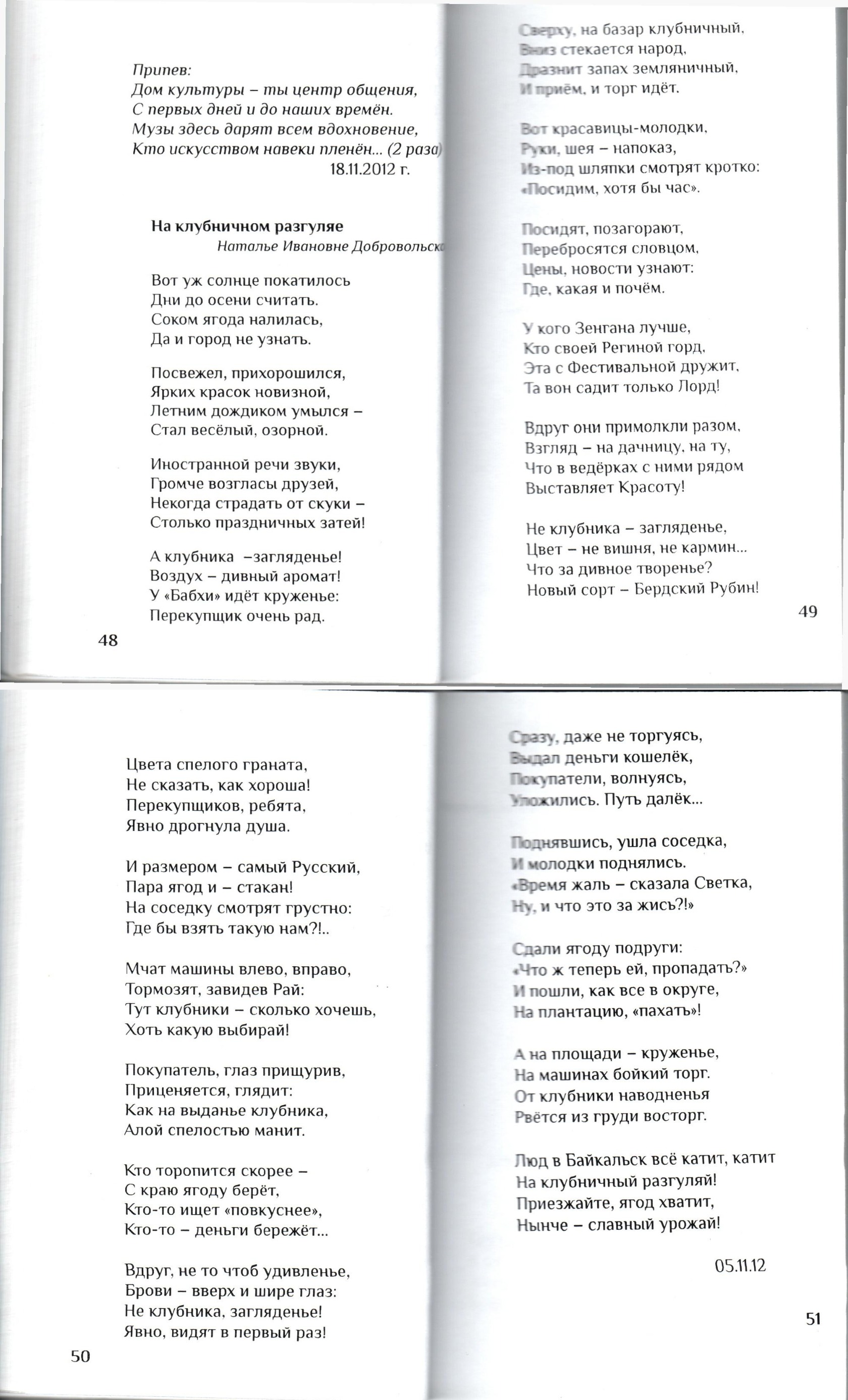 5. Тихонова Н. На клубничном разгуляе : Наталье Ивановне Добровольской / Нэлли Тихонова // У подножья Хамар-Дабана : [сборник стихов]. – Улан-Удэ, 2013. – С. 48-51.