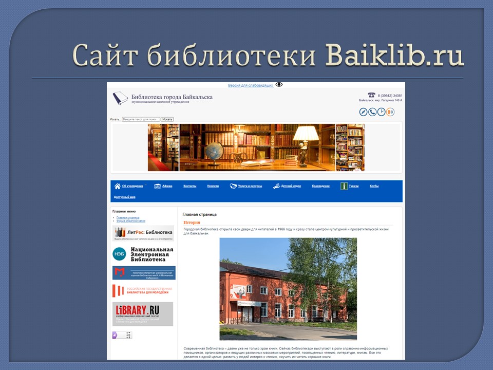 Современные информационные технологии. Из опыта работы МКУ «Библиотека города Байкальска»