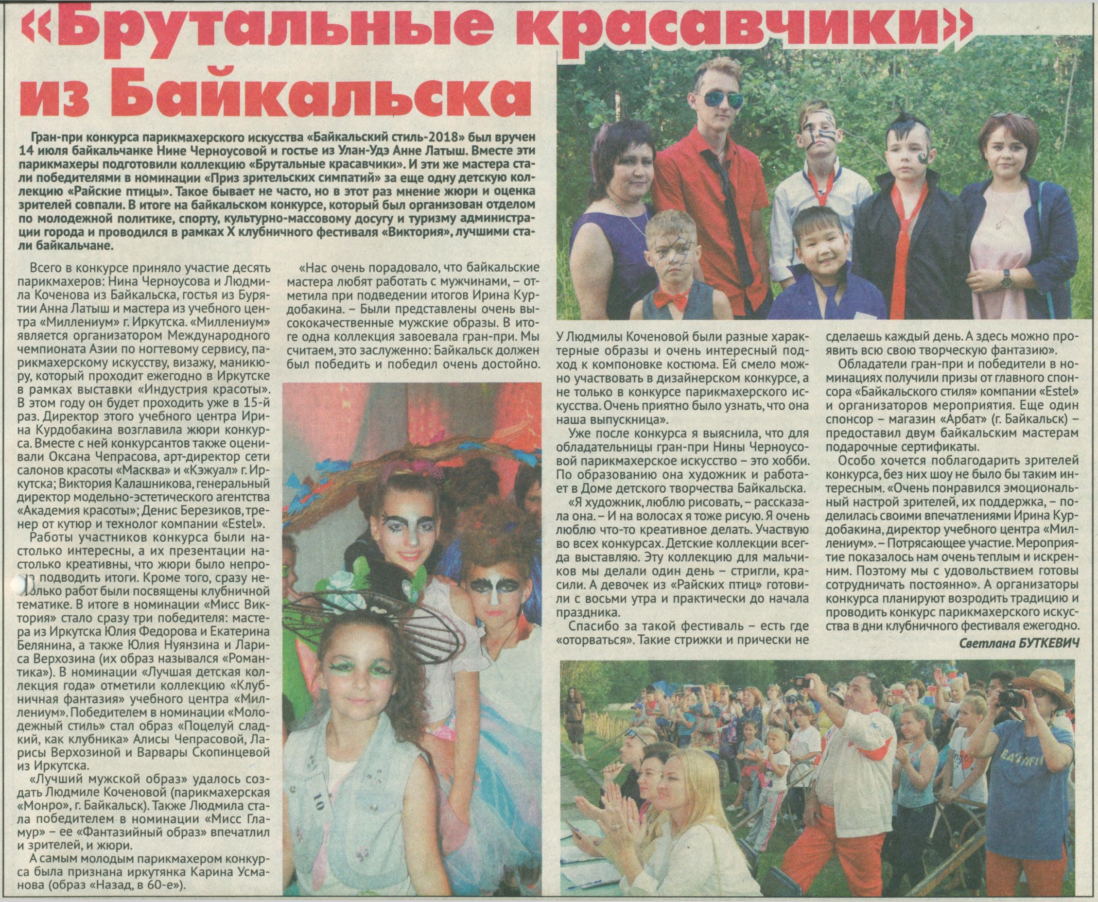 12. Буткевич Светлана. «Брутальные красавцы» из Байкальска // Байкал-новости. – 2018. – № 28. – С. 9.