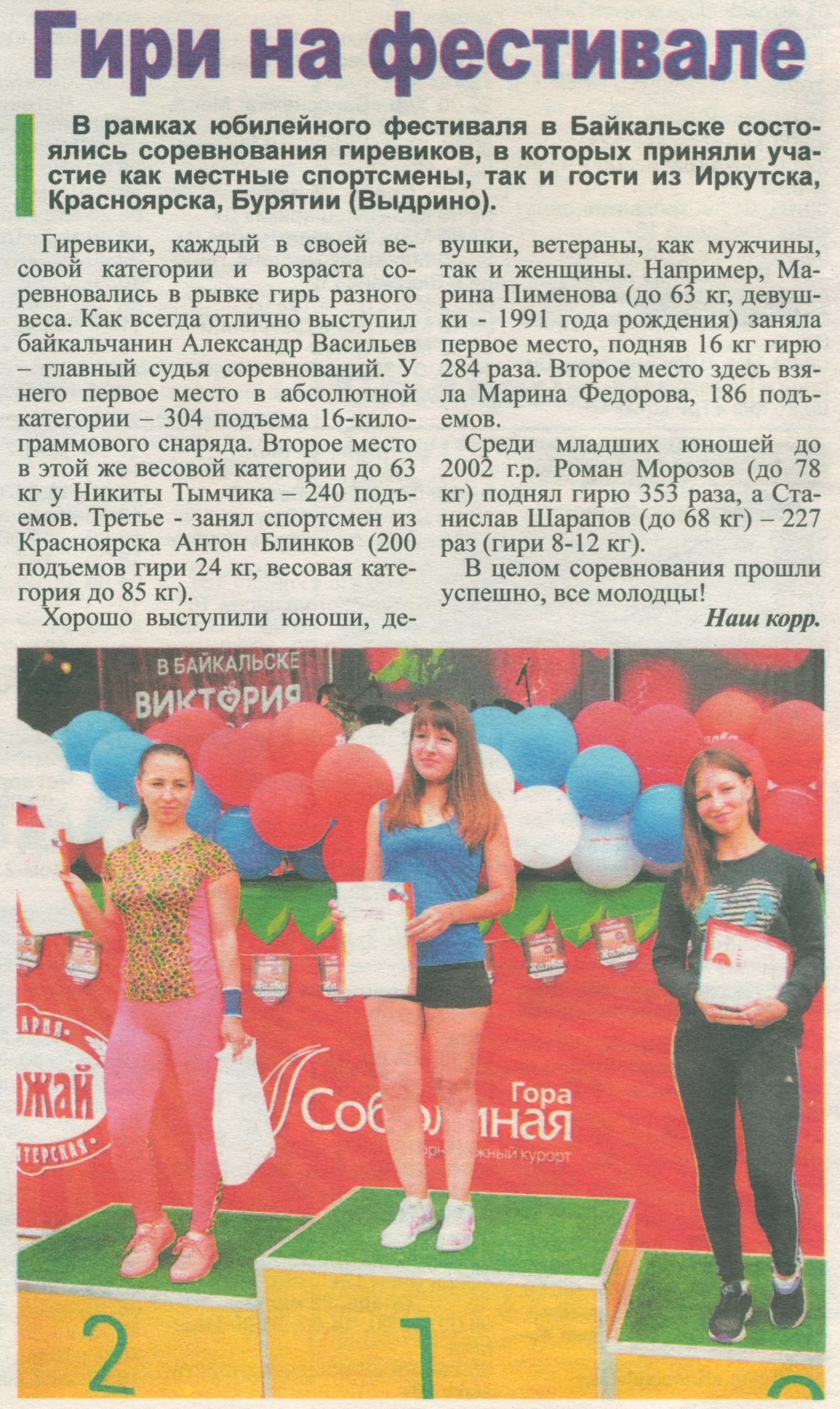 6. Гири на фестивале // Славное море. – 2018. – № 28. – С. 9.