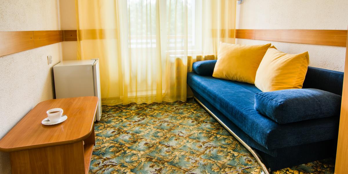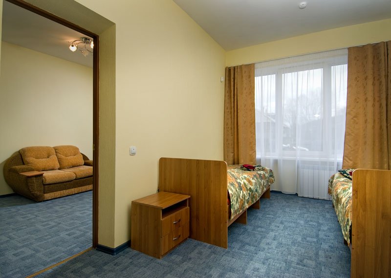 В номерах удобная мебель, в холодный сезон работает отопление, некоторые комнаты оборудованы гостиной зоной с деревянной мебелью и телевизором. Есть собственная ванная комната.