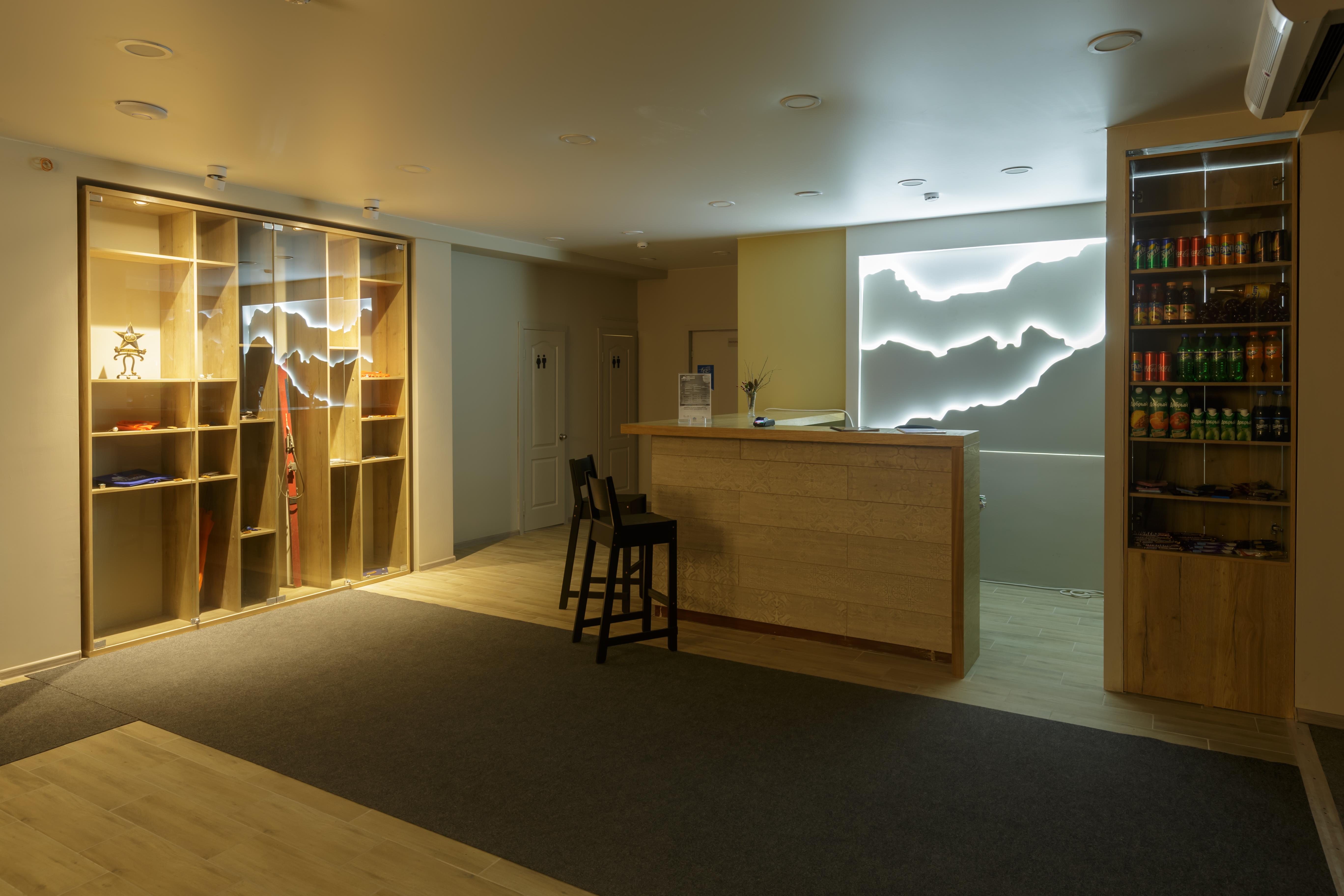 Это единственный отель на курорте, позволяющий организовать катание отдыхающих «от порога» (система skiin\skiout). Кроме того, в теплом переходе между гостиницей и кафе «Бугель Вугель» обустроена теплая вентилируемая локерная (помещения с кабинками для переодевания и хранения спортинвентаря).