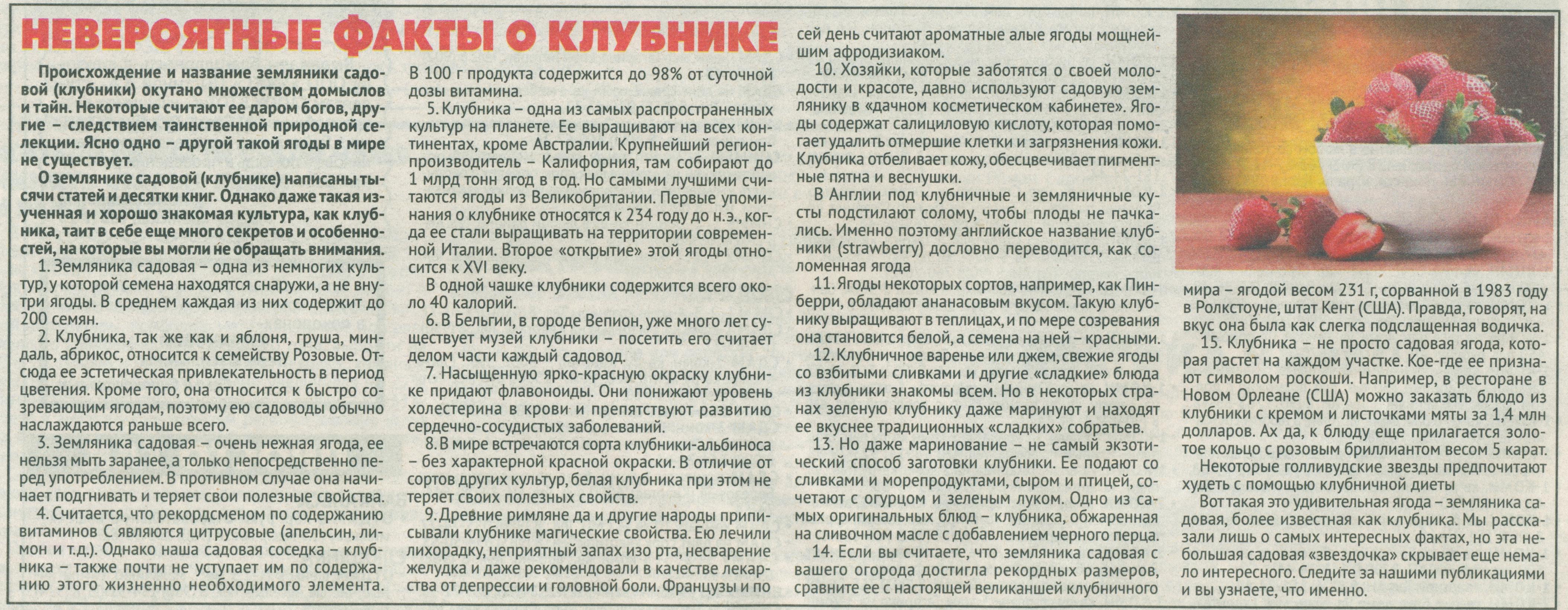 1. Невероятные факты о клубнике // Байкал-новости. – 2017. – № 29. – С. 16.