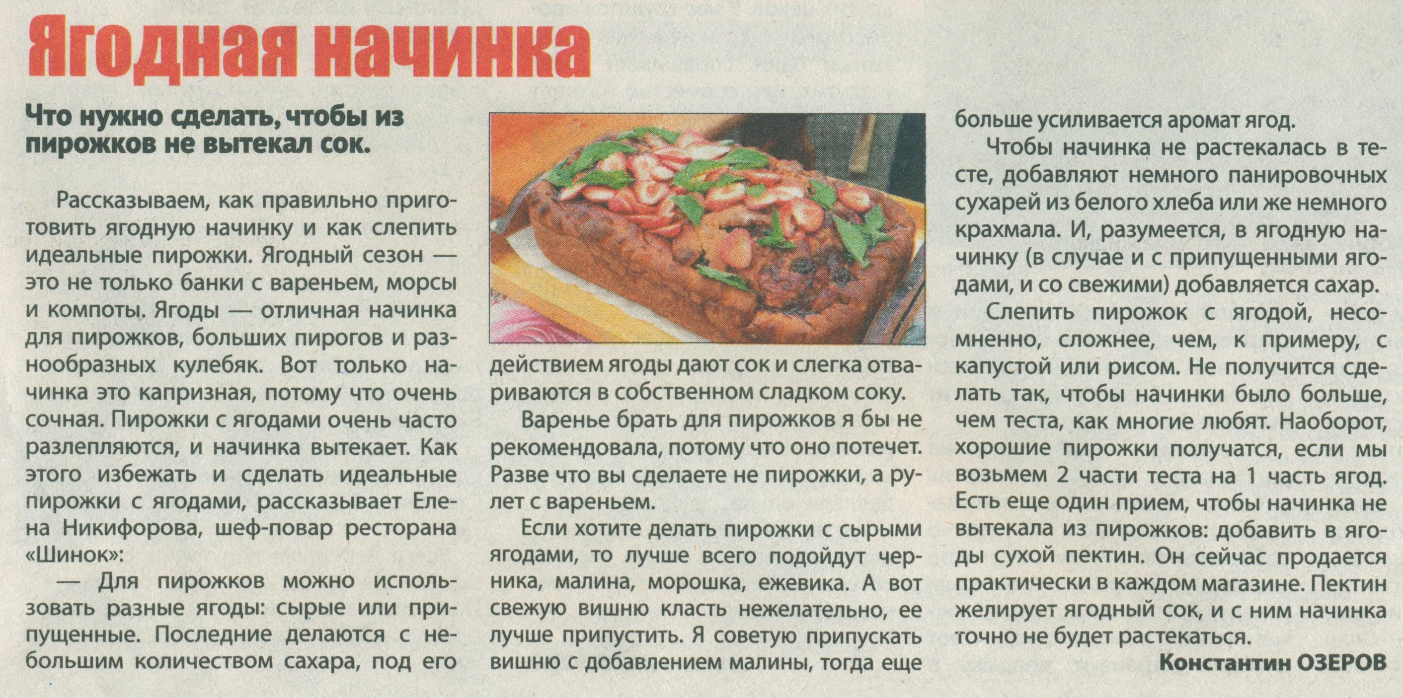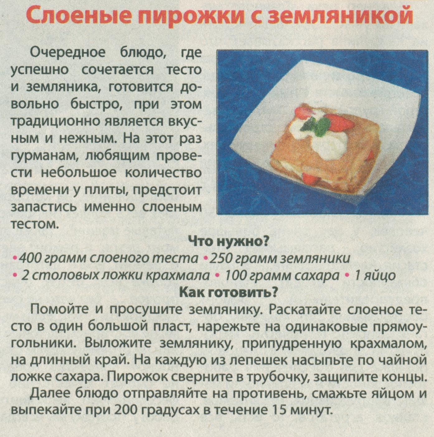 2. Слоёные пирожки с земляникой // Байкальская газета. – 2019. – № 30. – 1 августа. – С. 6.