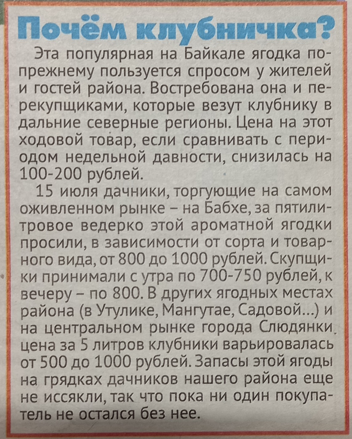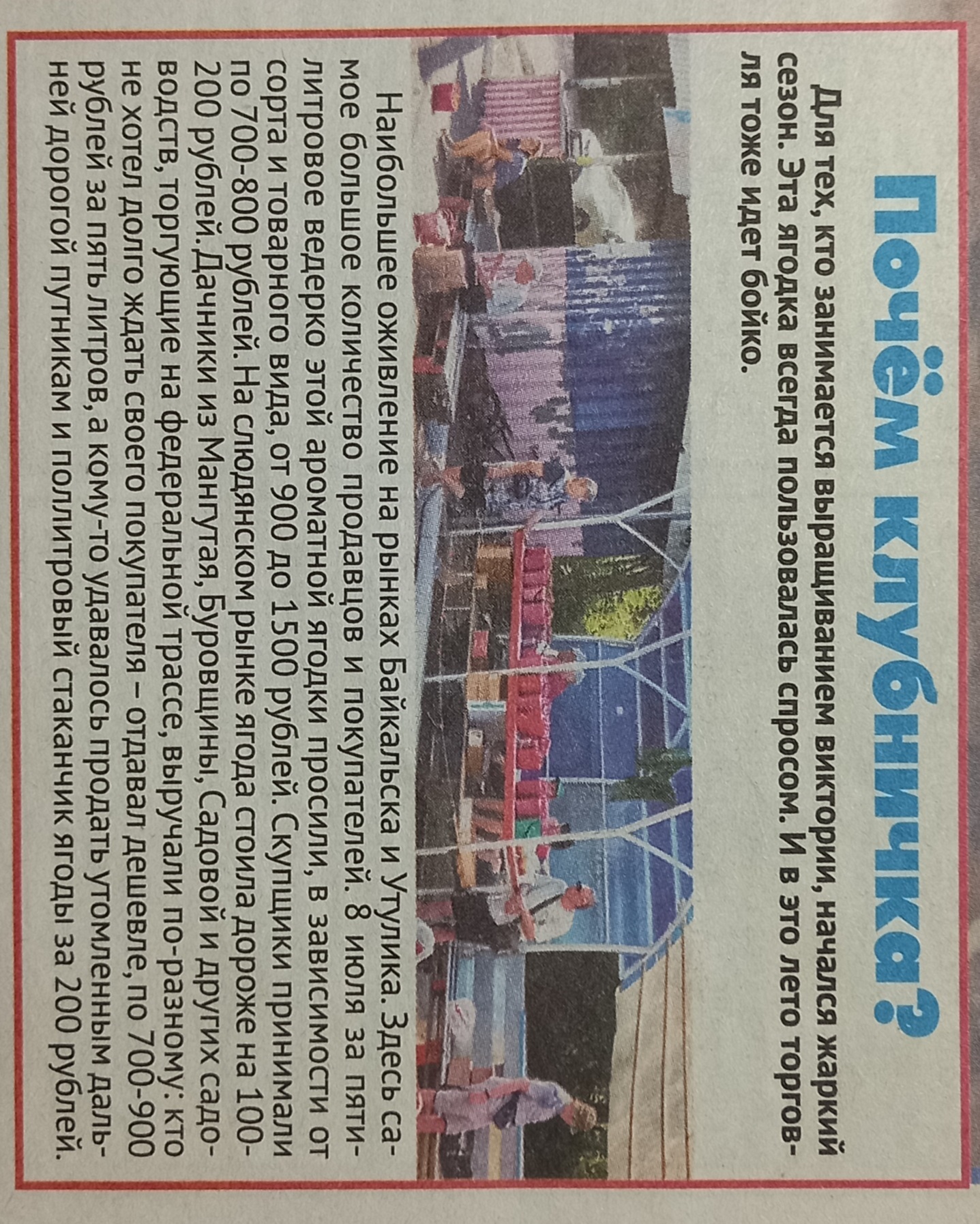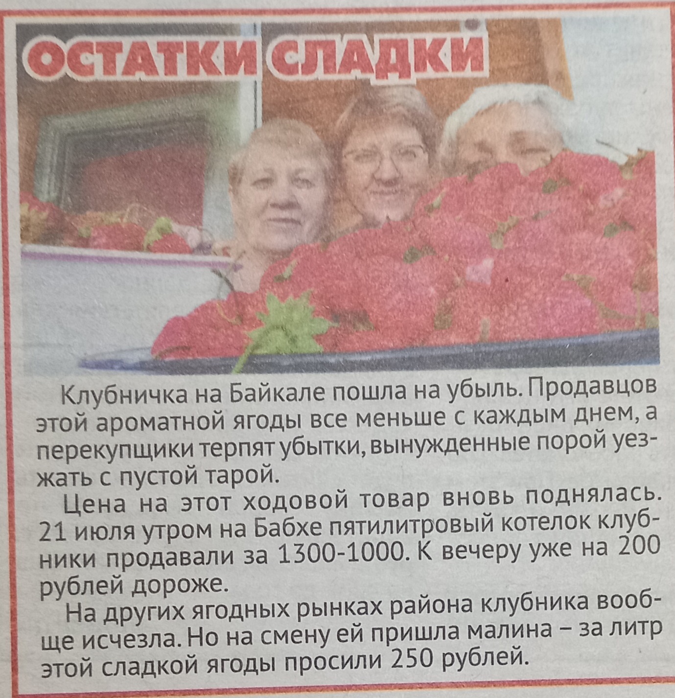 6. Почём клубничка? // Байкал-новости. – 2020 – № 28. – С. 1.