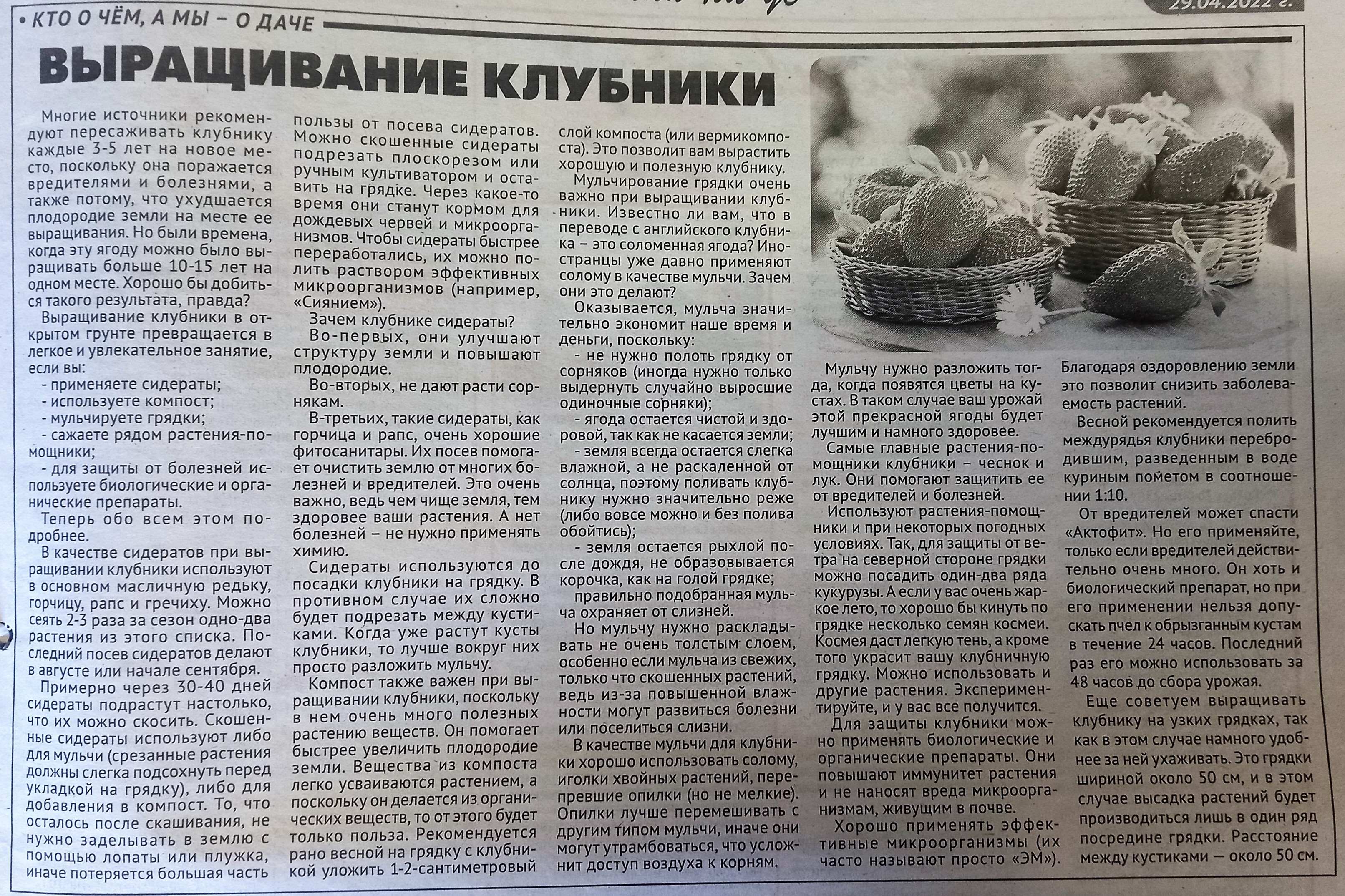 8. Выращивание клубники // Байкал-новости. – 2022. – № 16. – С. 7.