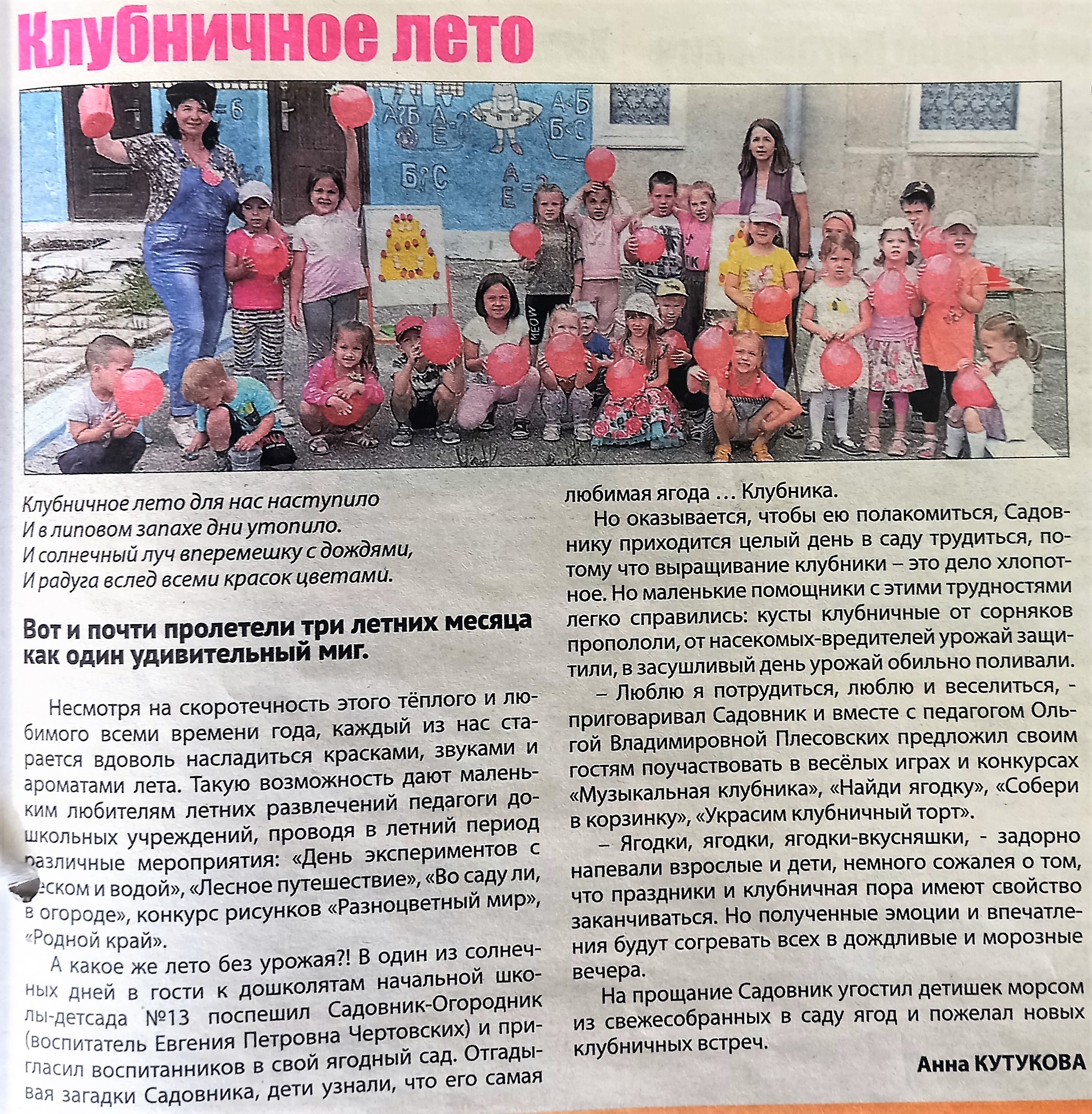9. Кутукова Анна. Клубничное лето // Байкальская газета. – 2022. – № 32. – С. 7.