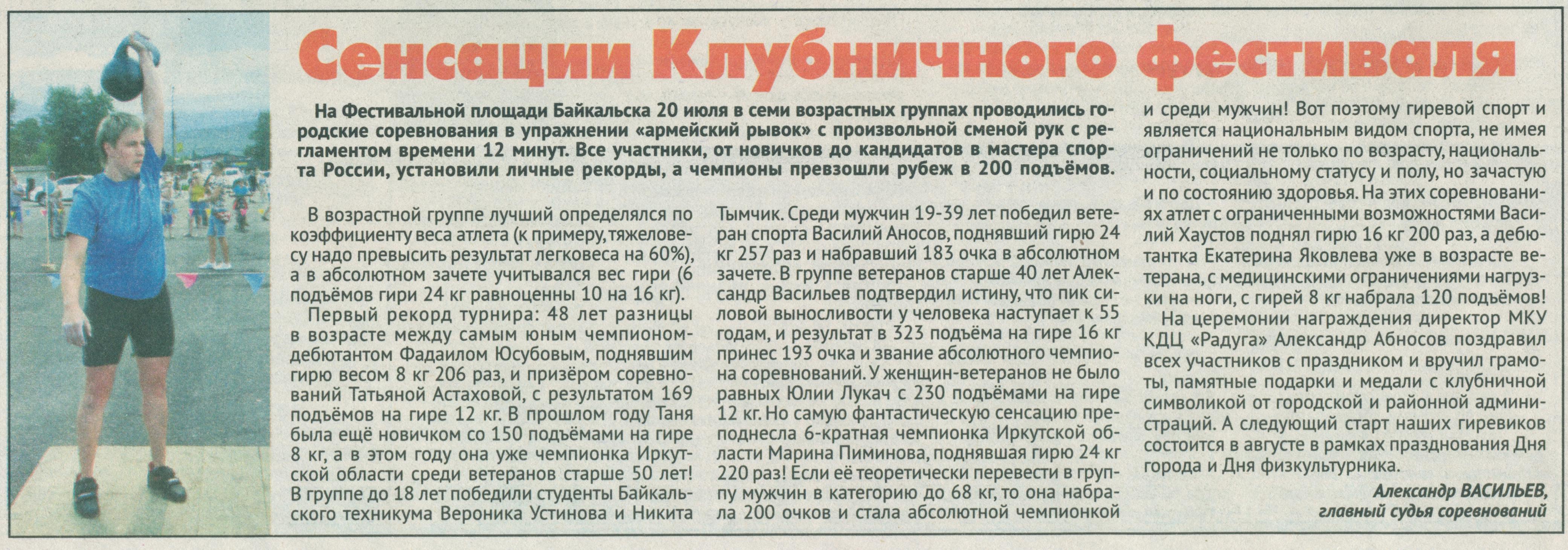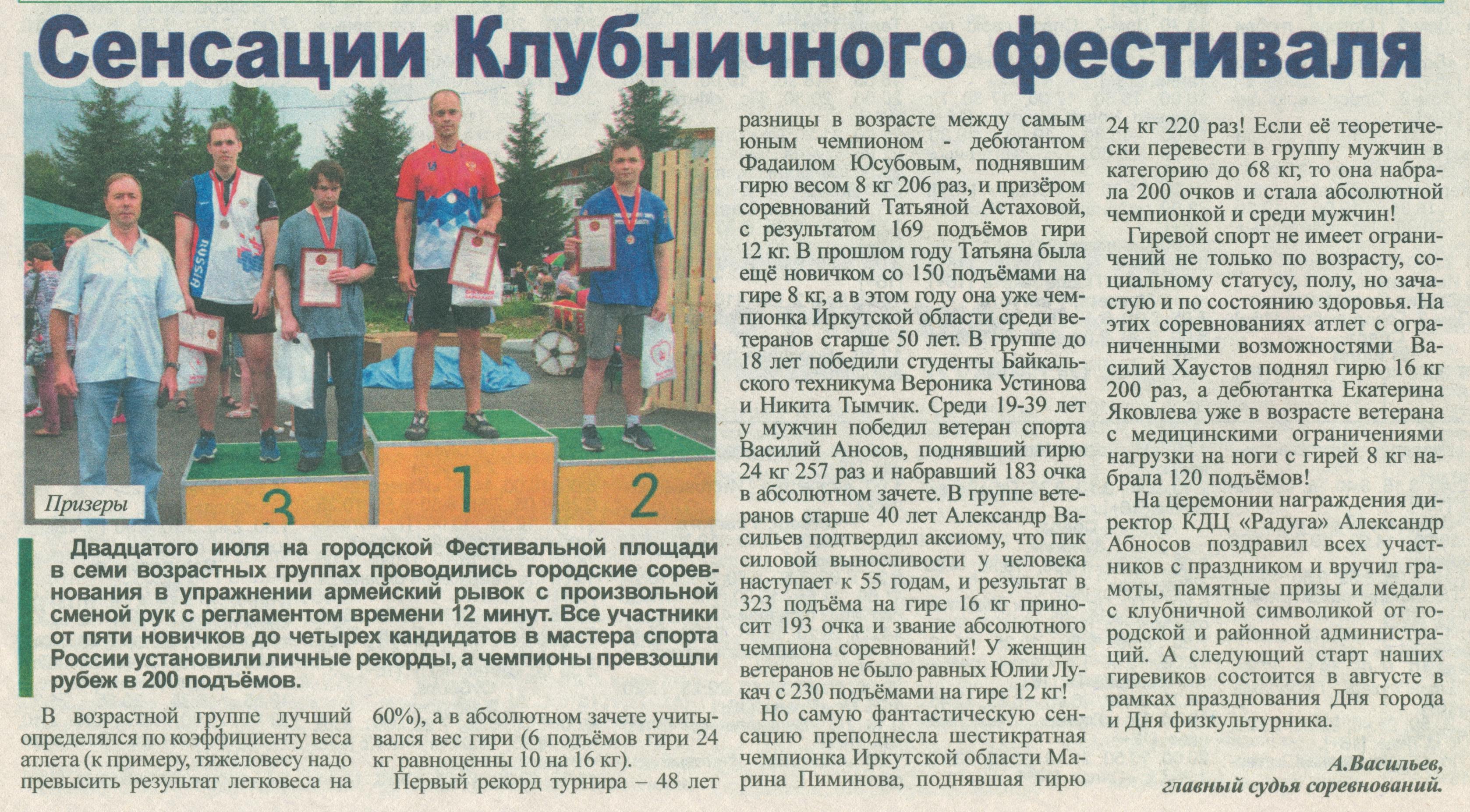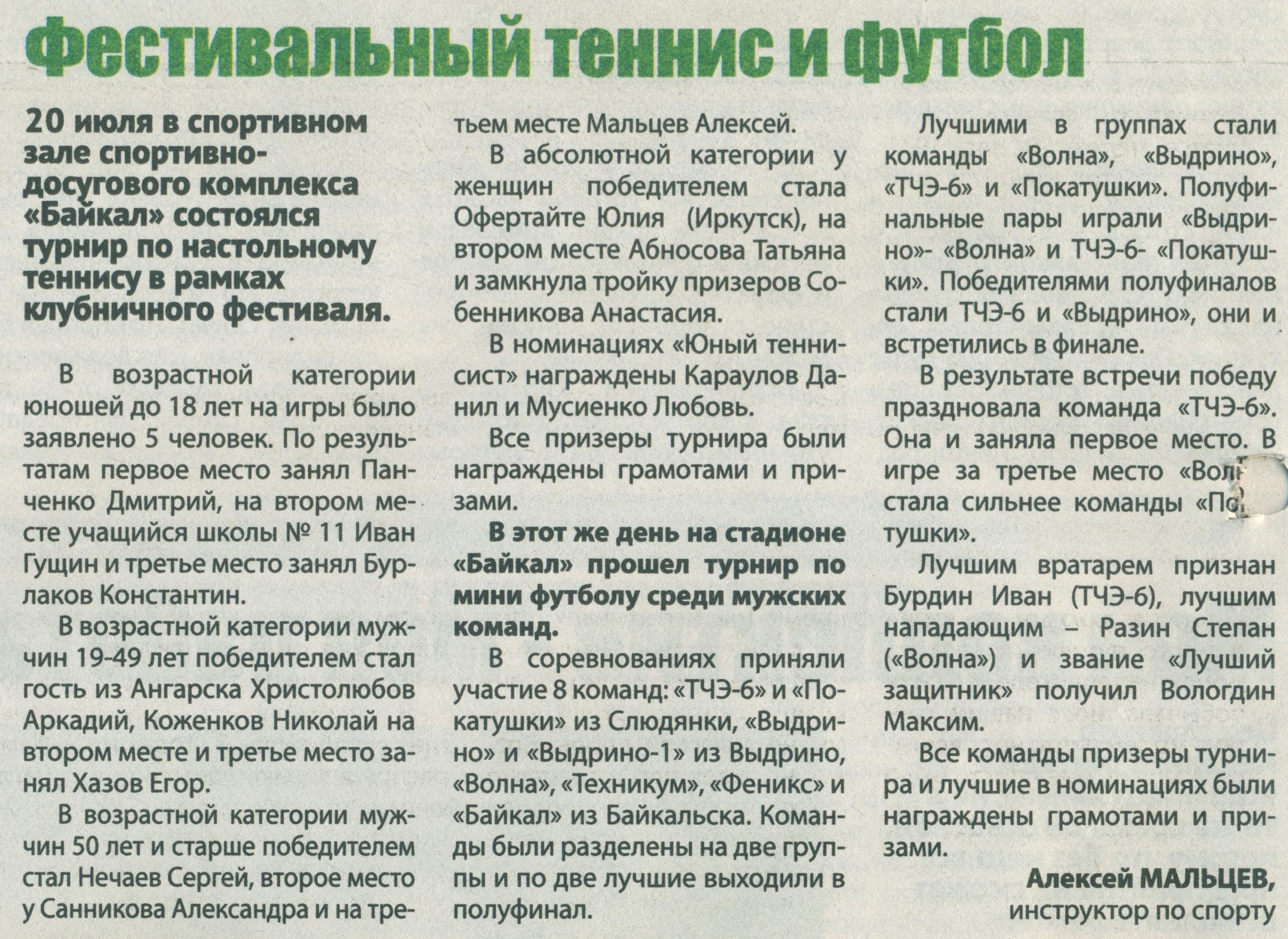 10. Мальцев Алексей. Фестивальный теннис и футбол // Байкальская газета. – 2019. – № 30. – С. 6.