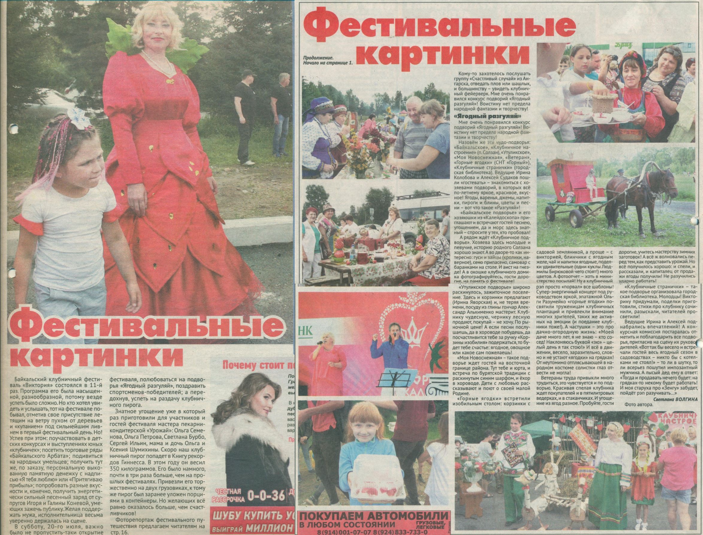 6. Волгина С. Фестивальные картинки / Светлана Волгина // Байкал-новости. – 2019. – № 29. – С. 1, 16.