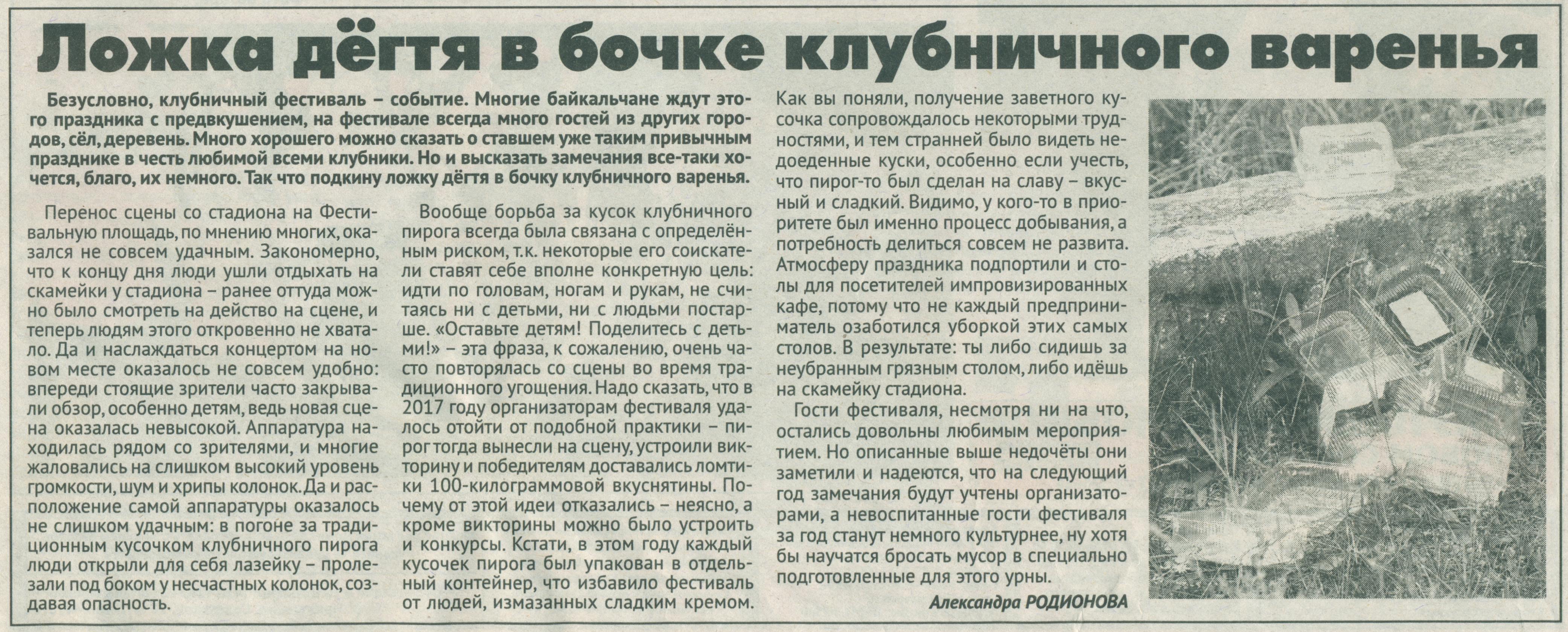3. Николаева О. Клубничный разгуляй / Ольга Николаева // Славное море. – 2019. – № 29. – С. 1, 8.